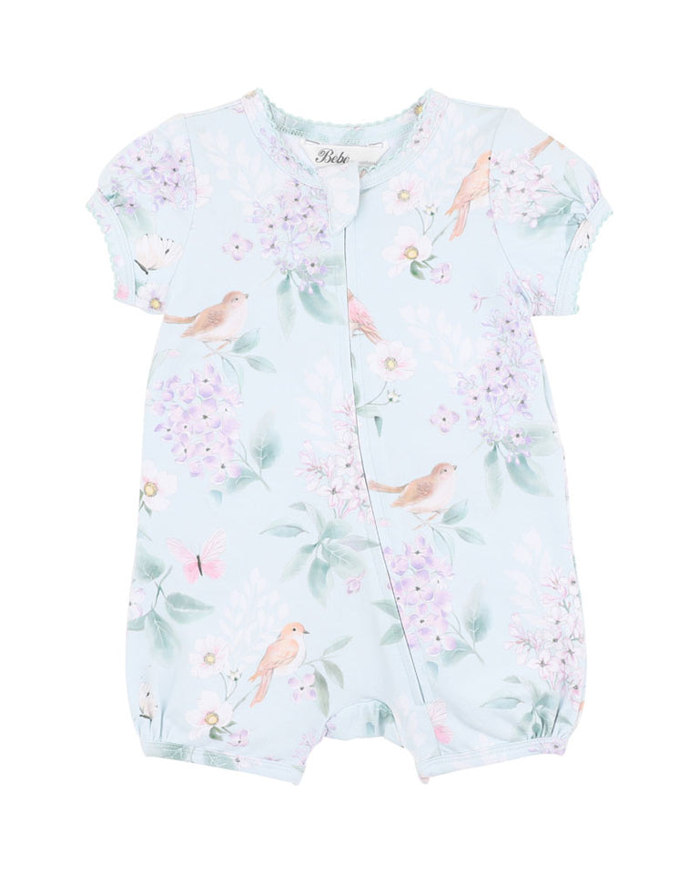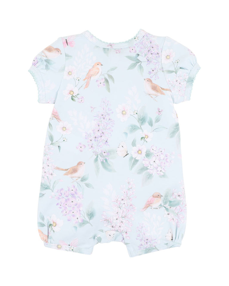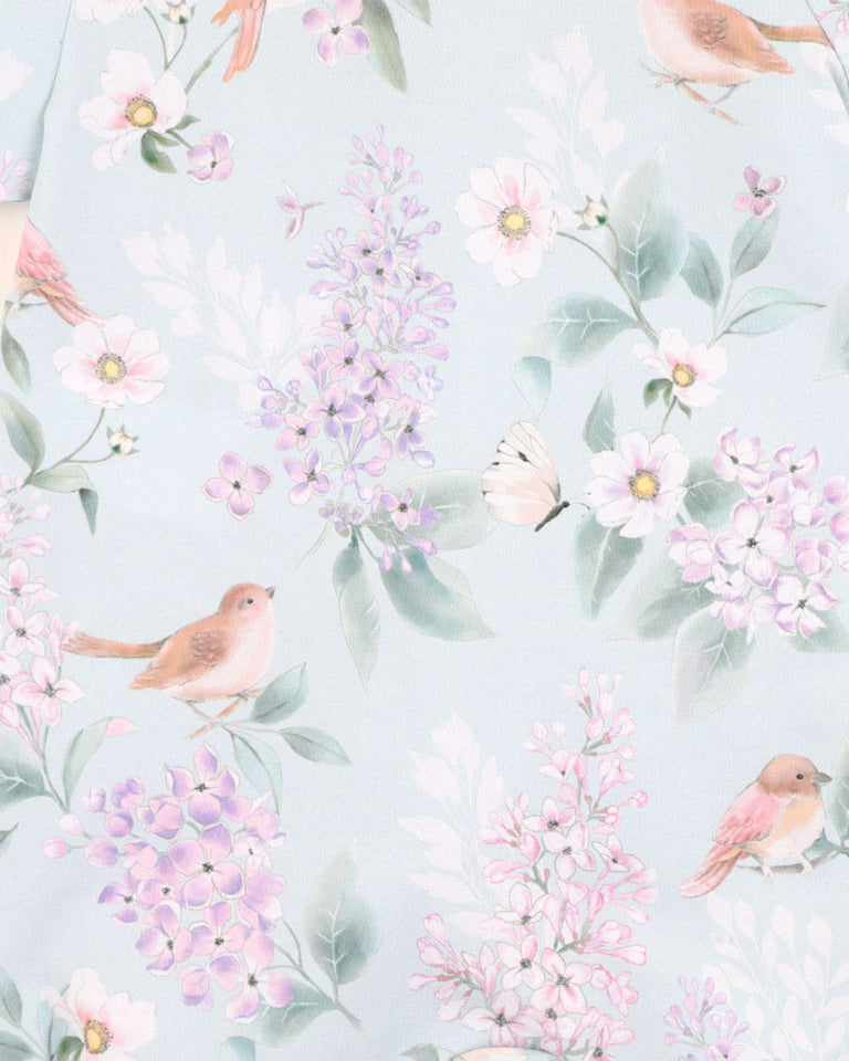 Let your little one flutter into the season in this enchanting romper, where soft skies and garden blooms meet sweet birds and butterflies. Crafted in a dreamy pastel palette, the exclusive Bébé by Minihaha print brings a whimsical storybook feel to everyday dressing. Designed with comfort in mind, it's made from a breathable cotton elastane jersey and finished with delicate picot trims. Pair it with the Madelyn print headband for a picture-perfect outfit that's as charming as it is practical.